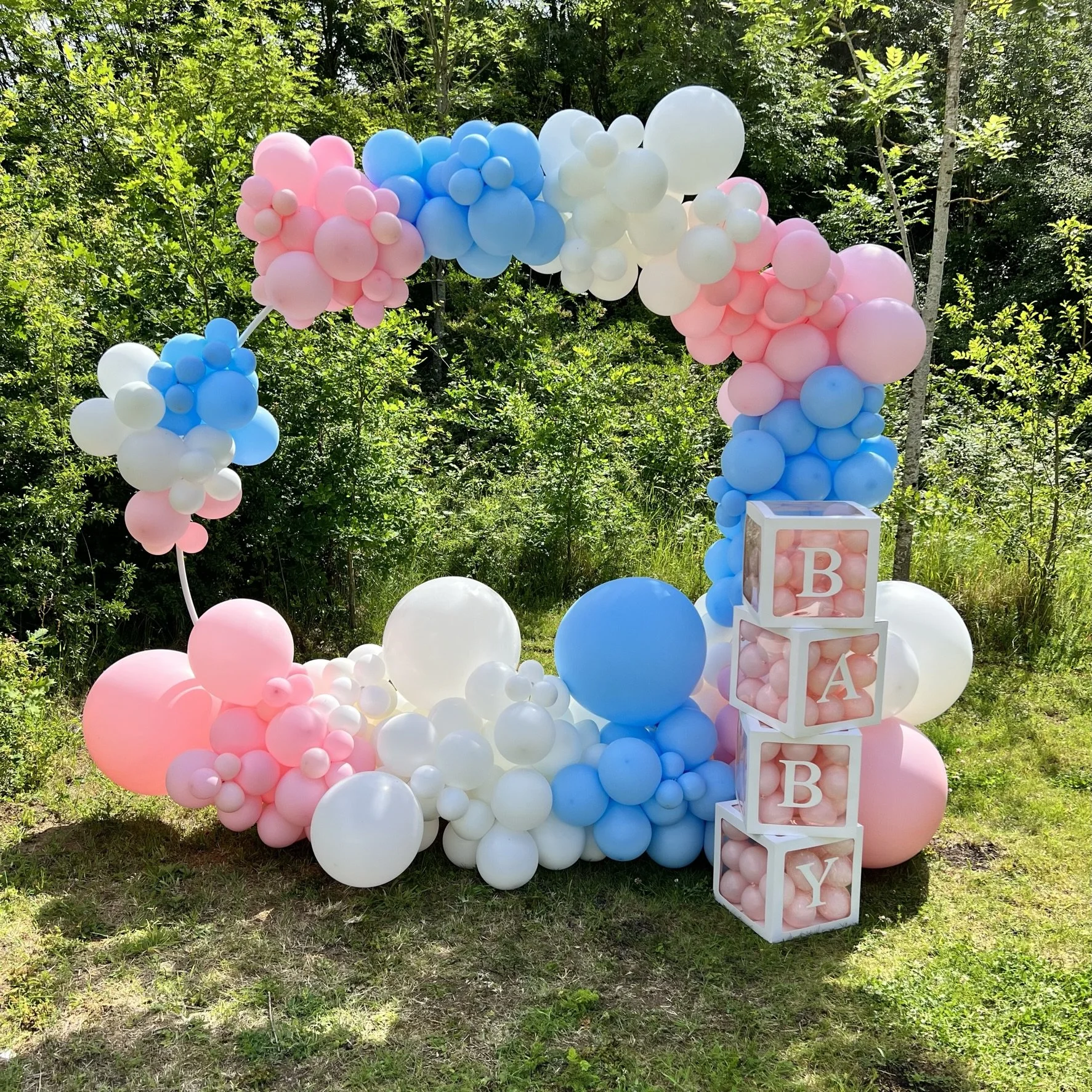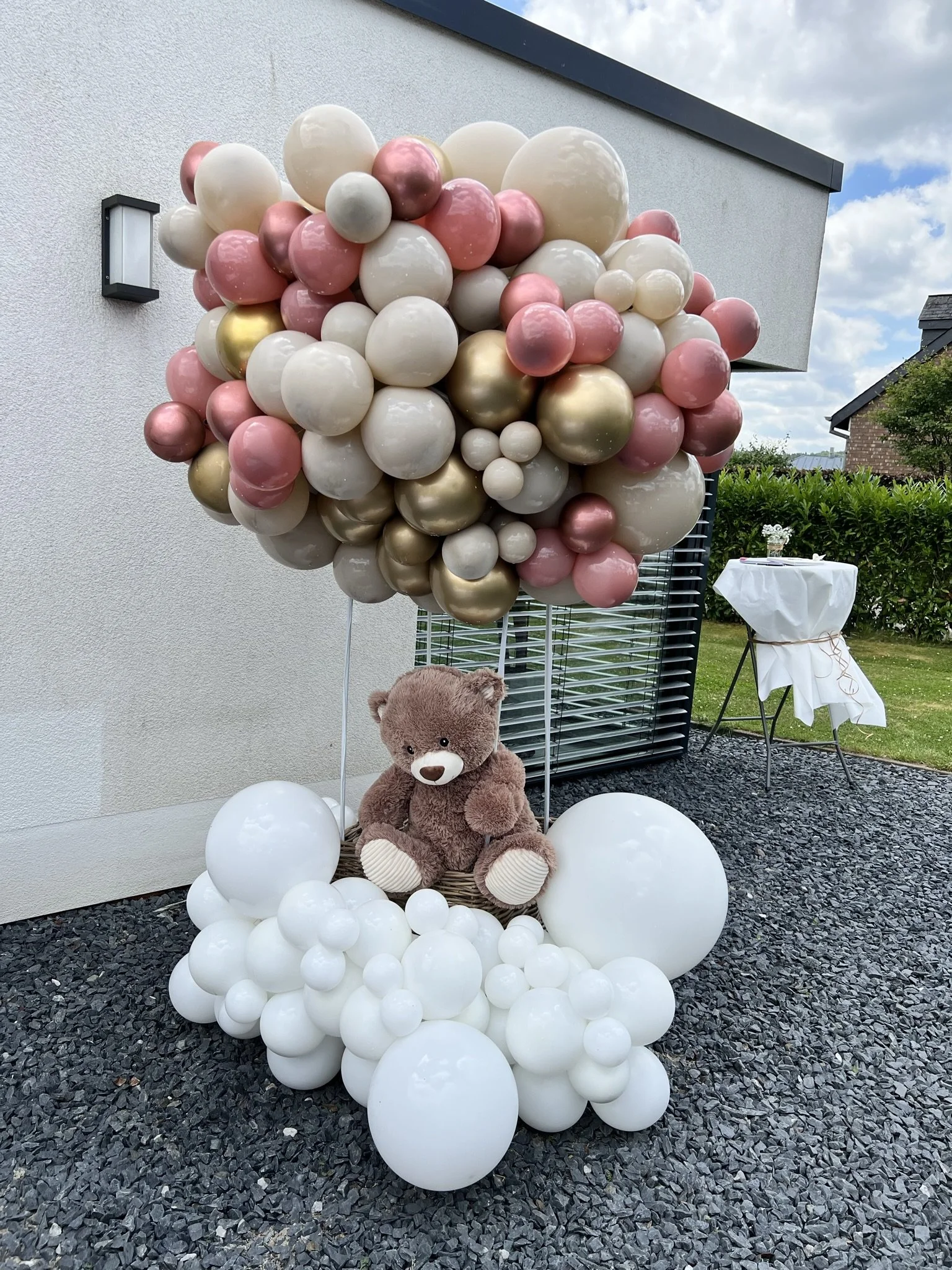arches de ballons, décors de table taffinés, mises en scène pour un photobooth original et, le must, créations sur mesure pour fille, garçon ou gender reveal.