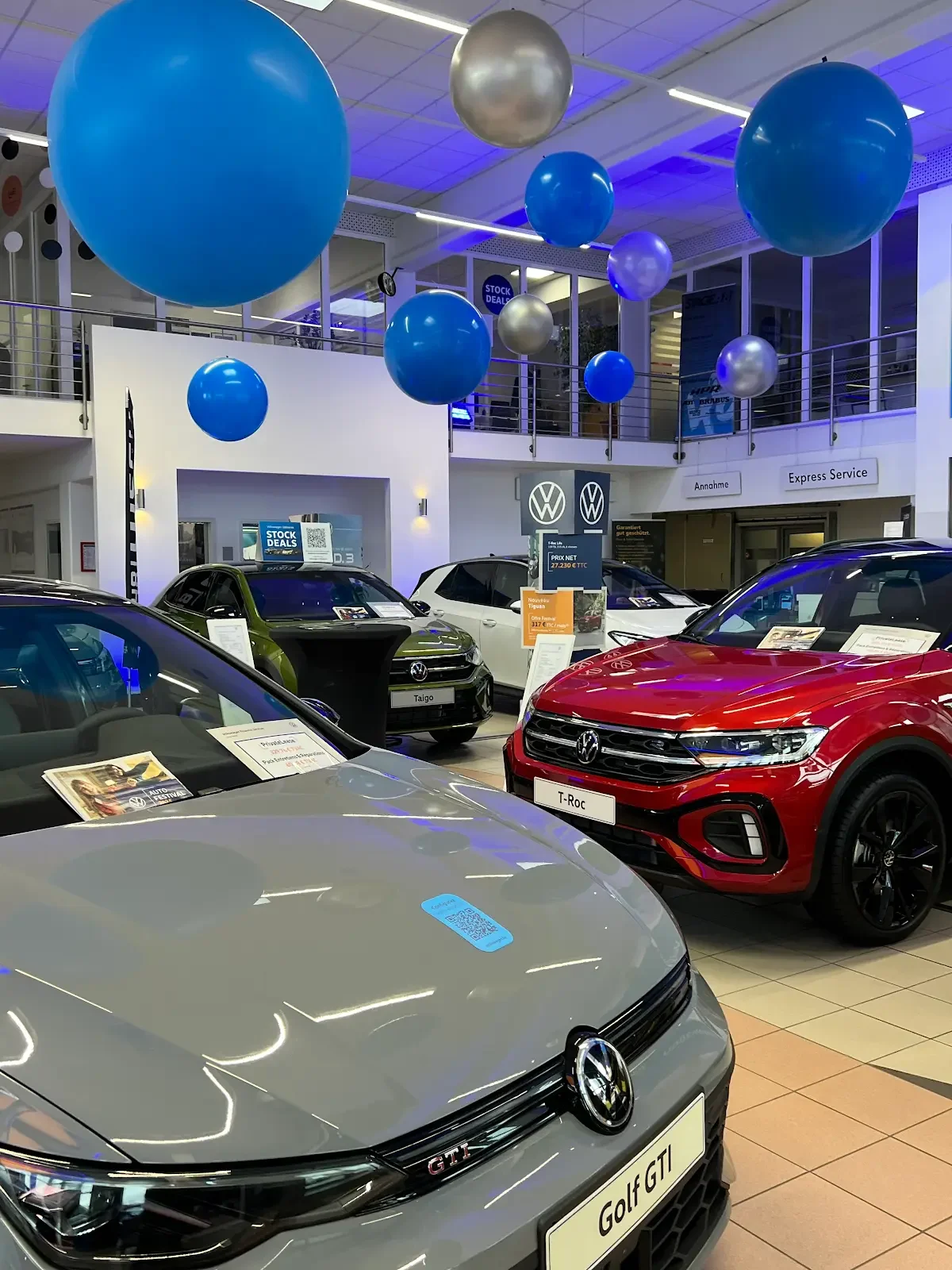 Sublimez vos espaces d’accueil, showrooms ou concessions avec une décoration ballons raffinée et sur mesure. Nous concevons des ambiances visuelles fortes et harmonieuses, parfaitement adaptées à l’univers de votre marque.